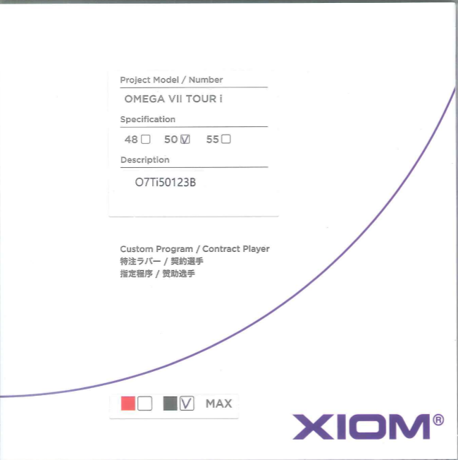 xiom omega vii tour 48度試打的差不多了。主要和蝴蝶T05、D05和自家的omega vii pro對比。簡單講一下:和omega vii pro比的話勝在力量感和摩擦有提升,速度則差不多。和蝴蝶比的話我覺得持球比T05更好(不易打滑)但沒有dignics咬。雖然實際打出來的旋轉和T05差不多,速度略快一點。如果說缺點的話大概是小力量摩擦(像是發球或拉轉的時候)感覺還是沒有蝴蝶那麽清晰(但打出來的效果是有達到同水平的,只是例如說咬沒咬到的感覺沒那麼明顯)。